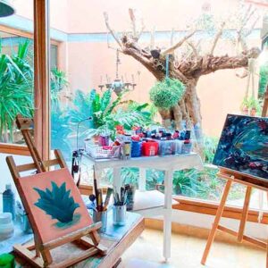 - Besonderen Einfluss übten während der Anfangszeit der Maler und Bildhauer Ernst Leonhardt aus Berlin und der Ausnahmekünstler Axel Kentsch in Es Carritxo/Mallorca auf mich aus. An Axels Seite habe ich viele Stunden in seinem Atelier zugebracht, mich mit ihm über „das wirkliche Sehen“ ausgetauscht, über Kunst und Farben, und als seine Schülerin erste eigene Projekte realisiert.