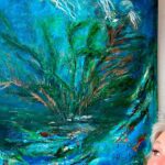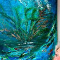 - Hauptsächlich entstehen meine Bilder in Acryl und Öl, aber diese klassische Basis erweitere ich ständig durch Experimente mit Materialien und Untergründen beim Gestalten von Collagen. Im Austausch mit anderen Künstlern, auch online, werde ich immer wieder zu neuen Ideen und Techniken inspiriert. Dabei lasse ich mich von der Magie der Farben leiten und von meiner Stimmung. Angefacht wird meine Fantasie jeden Tag aufs neue, seit ich 2019 auf einer Finca lebe, die mir nicht nur ausreichend Raum und Platz zum Arbeiten bietet, sondern wo mich die Natur in ihrer ganzen Fülle zu unerwarteten Begegnungen und erstaunlichen Beobachtungen einlädt.